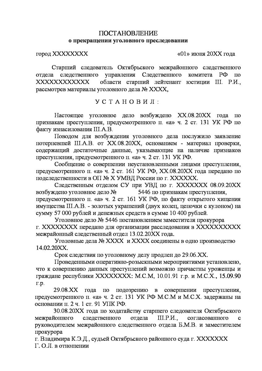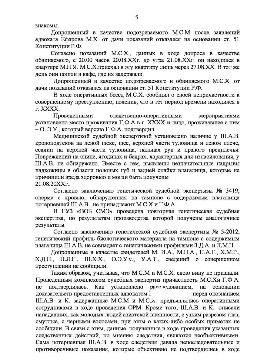 Адвокат в Апрелевке добился прекращения уголовного дела на стадии предварительного расследования по реабилитирующим основаниям в отношении двух граждан иностранного государства обвиняемых органами предварительно следствия в совершении преступления предусмотренного п. «а» ч.2 ст.131 УК РФ (изнасилование совершенное группой лиц) и п."а" , п."г" ч.2 ст.161 УК РФ (грабёж), наказание за которое предусматривает лишение свободы от восьми до пятнадцати лет, то есть преступление, которое в соответствии с ч.5 ст.15 Уголовного Кодекса Российской Федерации отнесено к категории особо тяжких преступлений.