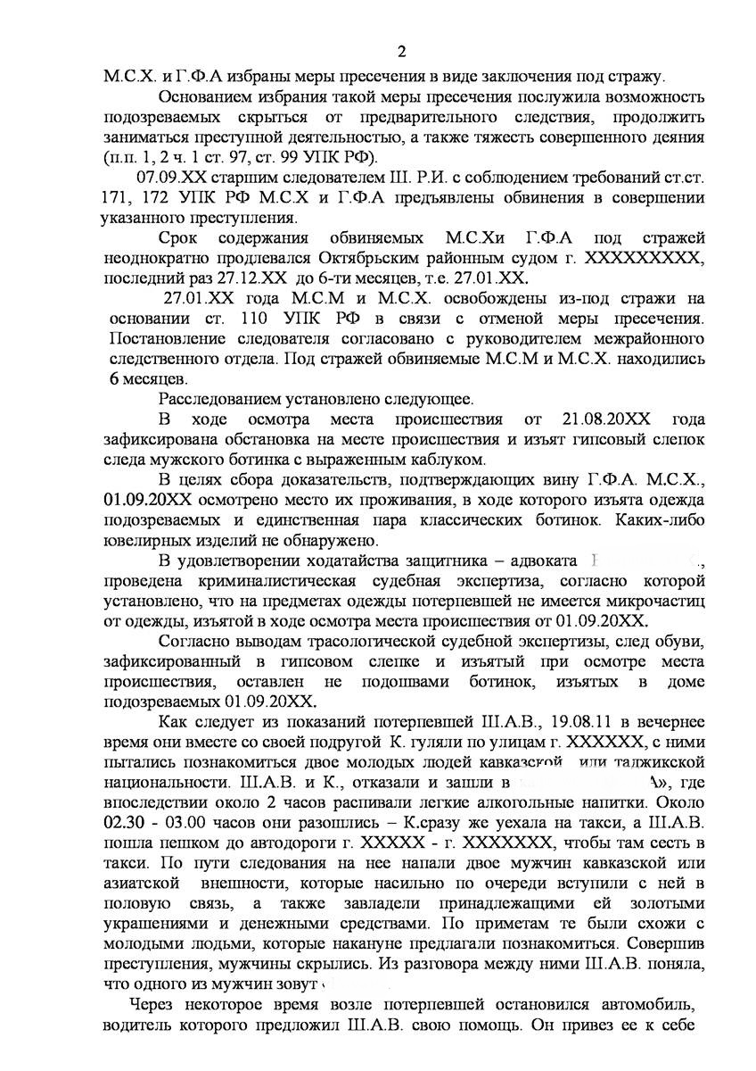 Уголовное преследование граждан иностранного государства, обвиняемых в совершении ряда групповых преступлений, предусмотренных п."а" ч.2 ст.131 УК РФ (изнасилование) и п."а" , п."г" ч.2 ст.161 УК РФ (грабёж).